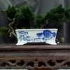 Chậu chữ nhật men lam; họa tiết cá rình mồi (CN051)