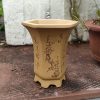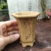 Chậu Lục giác điêu khắc thủ công; sắc bùn vàng; size nhỏ LG001