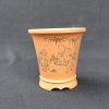 Bộ chậu tử sa tròn, cao điêu khắc thủ công; size nhỏ T007