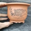 Chậu tử sa tròn điêu khắc thủ công hình rùa; quặng thô nguyên bản T003