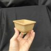 Chậu tử sa vuông điêu khắc thủ công, sắc bùn vàng V001