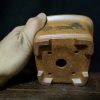 Chậu vuông điêu khắc thủ công 4 mặt; chậu thủ công, quặng thô nguyên bản (V055)